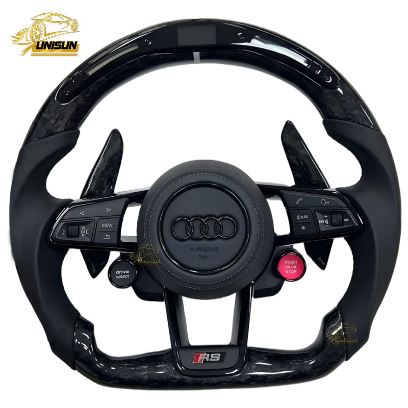 Steering Wheel: Real carbon fiber steering wheel. Specially prepared for Audi owners to replace the steering wheel. Our Carbon fiber material made of steering wheel more durable, long use can also maintain the luster, not easy to wear, and unique shape design more sexy. If you want to change your steering wheel, you can try our carbon fiber steering wheel.